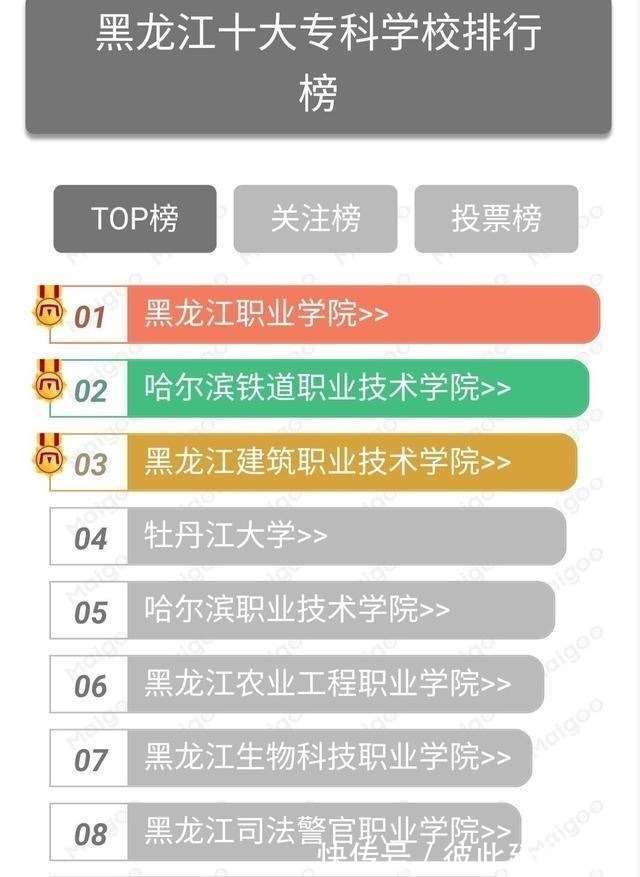 这里有黑龙江十大专科学校排行榜可以供大家参考,不过小编则认为这个排名不够严谨,虽然现在高职高专是同类学校,但是实际区别还是很大的,最明显的就是升格本科学校的方式完全不同,根据目前的政策与形势,高职学校只能升格为职业本科院校,冠名也只能是“职业技术大学”。而高专学校就不同了,你比如大庆医学高等专科学校将来升格就是大庆医学院,鹤岗师范高等专科学校可以升成为鹤岗师范学院。